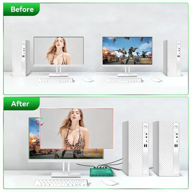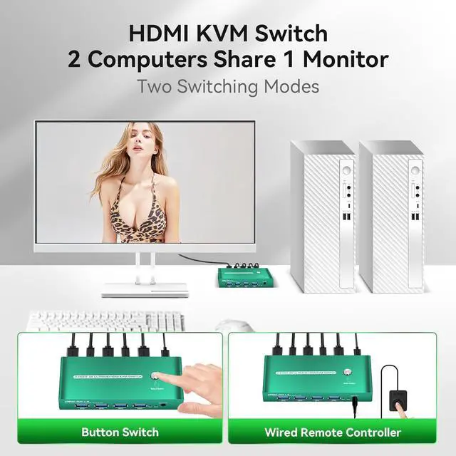 KVM Switch HDMI EDID 4k 60hz switch mode: kvm switch hdmi edid supports two switching methods to meet different needs, including buttons and wired remote control; After the first setup, it only takes a few seconds to switch;