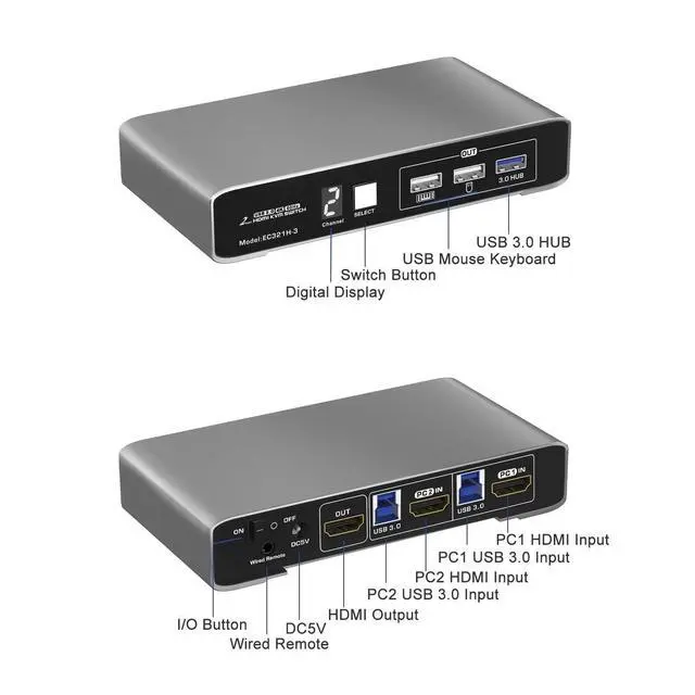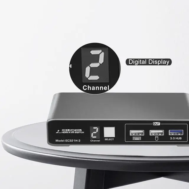 Clear Digital Display - Equipped with a digital screen that clearly indicates the currently selected computer channel.
