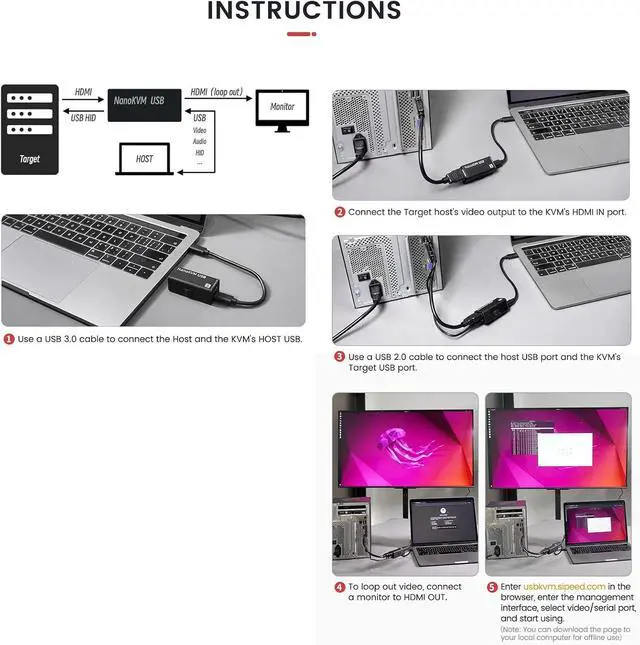 [Capture & Control via USB] Captures HDMI video and transmits it via USB 3.0. Also sends host keyboard and mouse inputs in real-time to the target device, replacing traditional monitor and peripheral connections.
