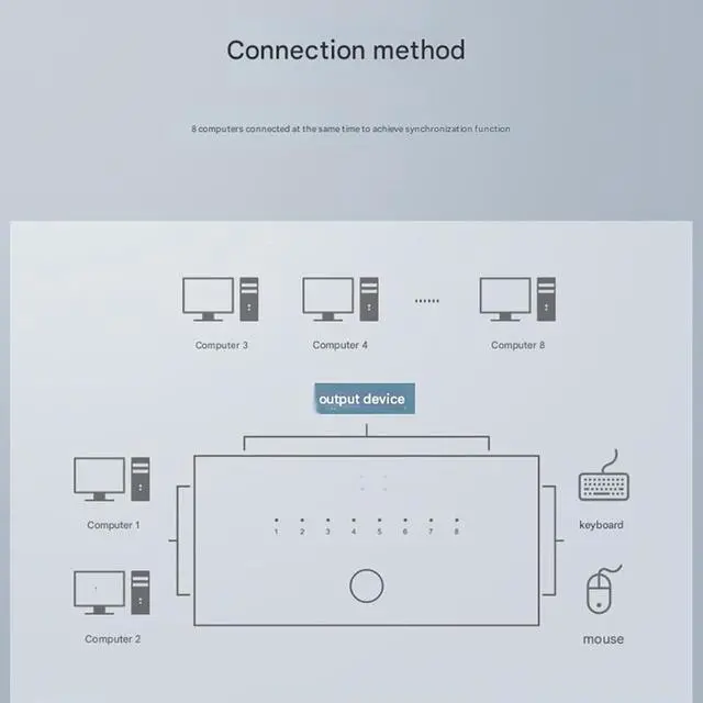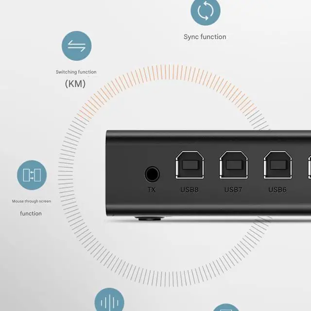 Multiple port distributors: The Multi-Port Synchronizer allows for free switching or simultaneous control of 8 ports at the touch of a button. As a KM Synchronizer, it can switch between hotkey mode and simultaneous keystroke mode for quick and easy operation.