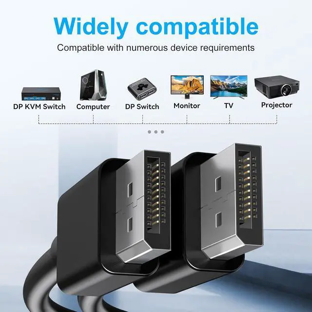 8K DisplayPort: After our test, this DP cable has the best compatibility with this KVM, you can enjoy the visual experience more smoothly. Maximizes the performance of your graphics card and monitor. Dynamic HDR optimizes darker images, enhances details in games, and enjoys the visual experience.
