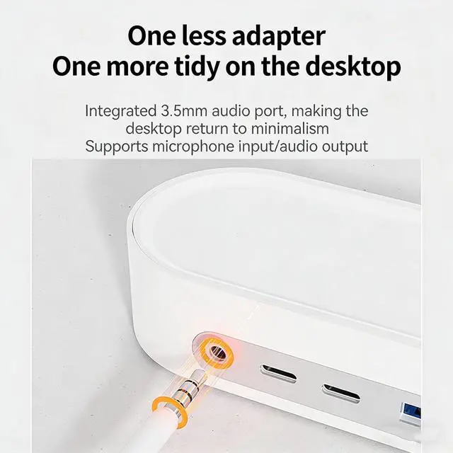 • 12in1 Docking HubIntegrates 12 versatile ports in one device: 10Gbps data transfer, 45W PD fast charging, UHSII card reader, audio interface, and multiple USB connections. Covers all desktop scenarios with ease.