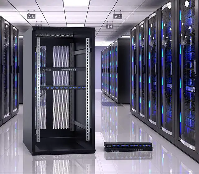 For 8 port rack mount kvm switch: 2 switching options: 1: desktop switch: with 2M wire-extended selector, 2: button switching: press the button to select the PC