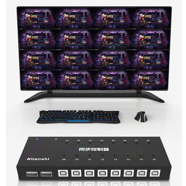 Multiple port distributors: The Multi-Port Synchronizer allows for free switching or simultaneous control of 16 ports at the touch of a button. As a KM Synchronizer, it can switch between hotkey mode and simultaneous keystroke mode for quick and easy operation.
