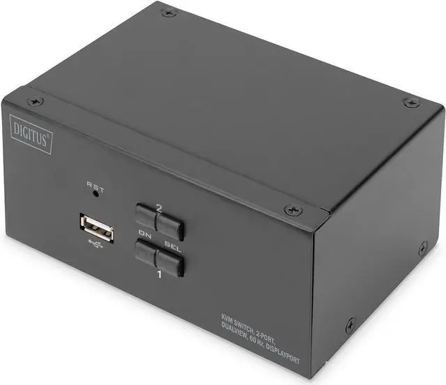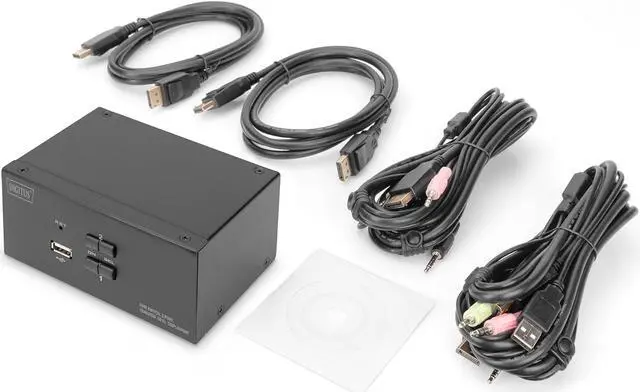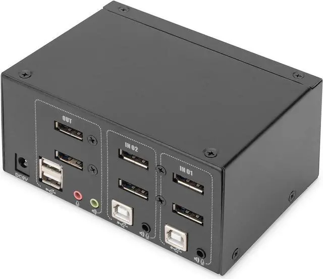 Switch between PCs via switch on the KVM switch or hotkey on the keyboard