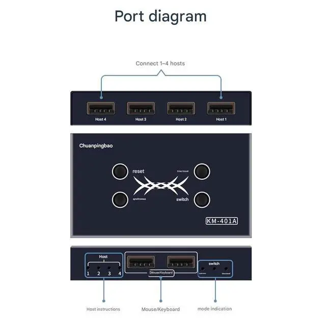 • Synchronizer Function: The 2/4/8-port USB interface realizes 2/4/8 free switching synchronous control. As both a synchronizer and a KM switcher, You can switch between hotkey mode and synchronizer button mode, which is convenient and quick.