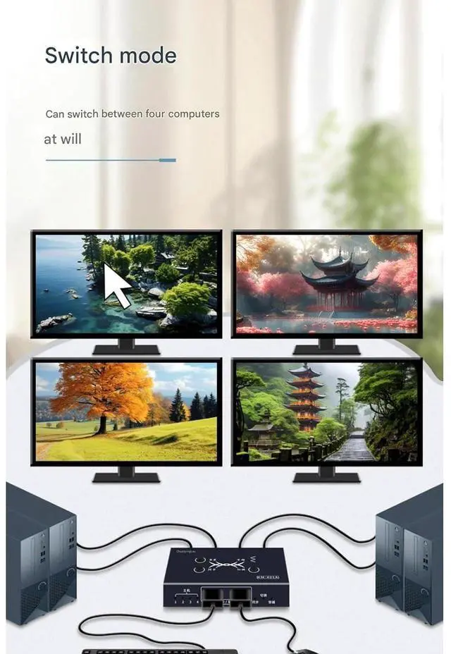 • KVM Switch Material: The mouse can be moved between screensKVM switch is Gold-plated alloy body. It features an all-metal matte shell and a thick gold-plated interface. Compatible with various HD versions of input, ensuring transmission performance and improving transmission speed.
