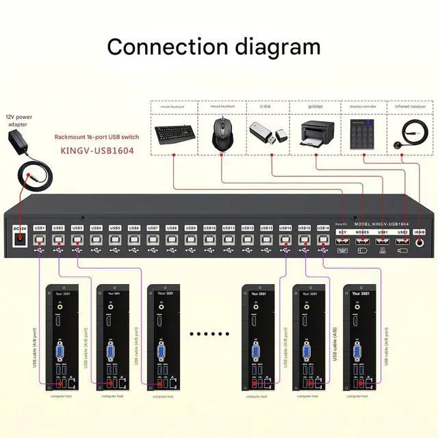 Switch at willctionDirectly press the 16 buttons on the USB switch to switch or the 16-button metal controller to switch. The controller connection line can be extended to more than 20, remote control/convenient/fast/efficient/stable switching