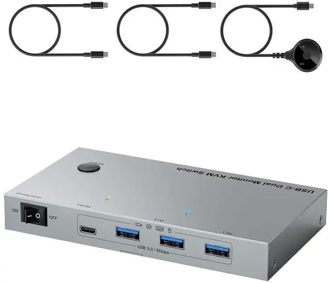 Perfect for home offices or workstations, this switcher eliminates desk clutter by centralizing connection between double monitors, laptops, and USB devices, enabling quick toggling via remote or front panel button