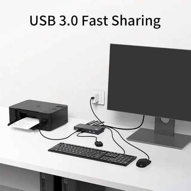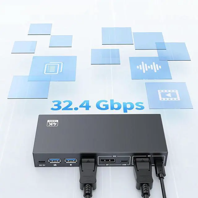 USB3.0 DisplayPort KVM switcher enables control of 2 computers through 1 monitor with 4K@144Hz resolution
