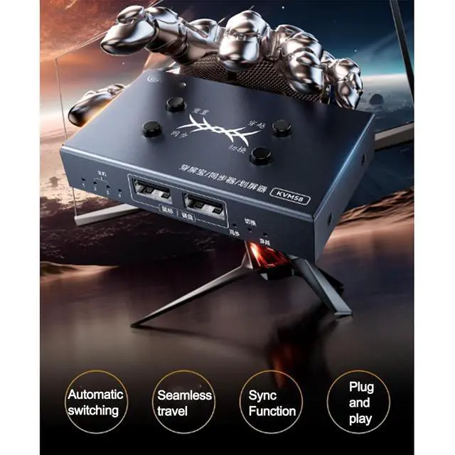 It's both a synchronizer and a KVM switch, allowing for cascading multiple devices without latency, automatic burst transmission, mouse-over functionality, control of multiple phones/tablets, hotkey switching, plug-and-play operation.