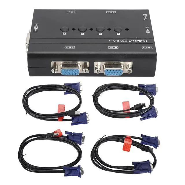 COMPACT AND EXQUISITE: Small size design does not take up desktop space. Everything you need is included in the package, such as 4 special USB VGA KVM cables (2 in 1). Connect the VGA cable with USB connector to the port on your computer.