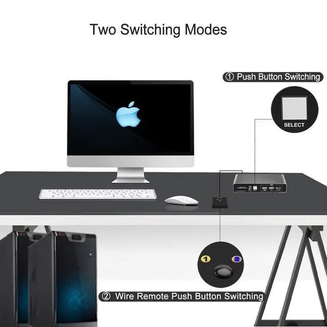 DP KVM Switch - The 2-Port HDMI KVM Switch enables two DP-equipped PCs to share 1 DP monitor, a keyboard, and mouse, facilitating effortless switching between systems. It helps declutter your workspace and maintain a neat, organized environment.