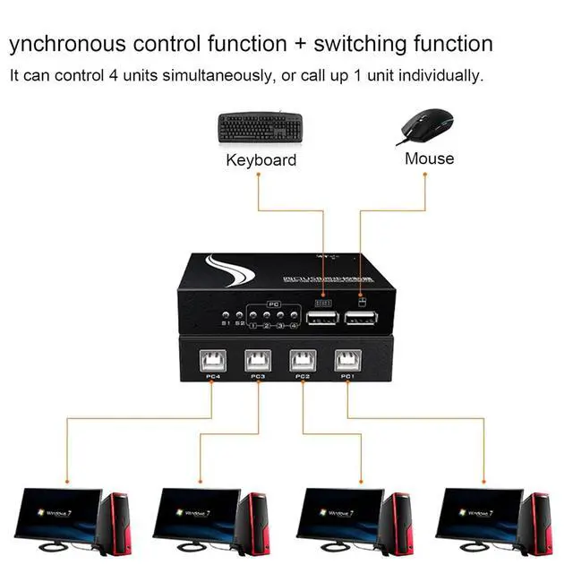 Features: 4 port distributor Built-in imported high-performance chip, to help you better control computers, Plug and Play Good compatibility, no driver required.