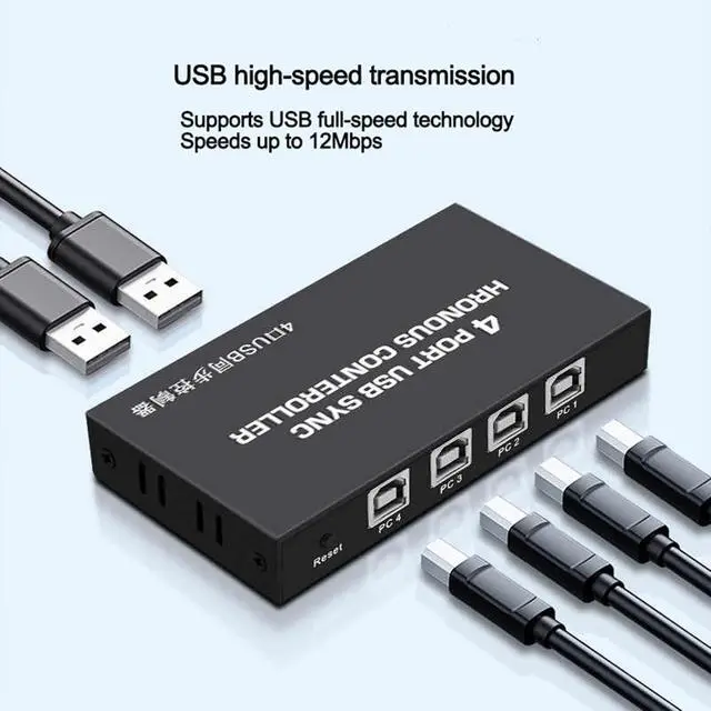 4-Port USB Synchronizer/Sharer - KVM Switch, 1 in 4 Out Multi-Opening USB Keyboard Mouse Sync Controller, DNF Game Distributor, for Stock Market Surveillance, Offices