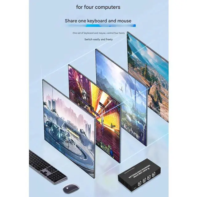 Synchronizer FunctionSynchronizer USB interface realizes 4 to 1 free switching or one-button 4-port synchronous control. As both a synchronizer and a KM switcher, You can switch between hotkey mode and synchronizer button mode, which is convenient and quick.
