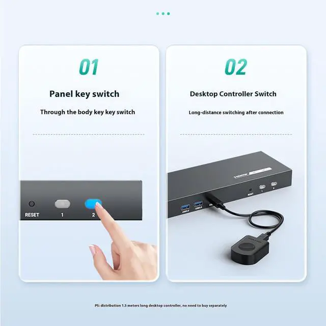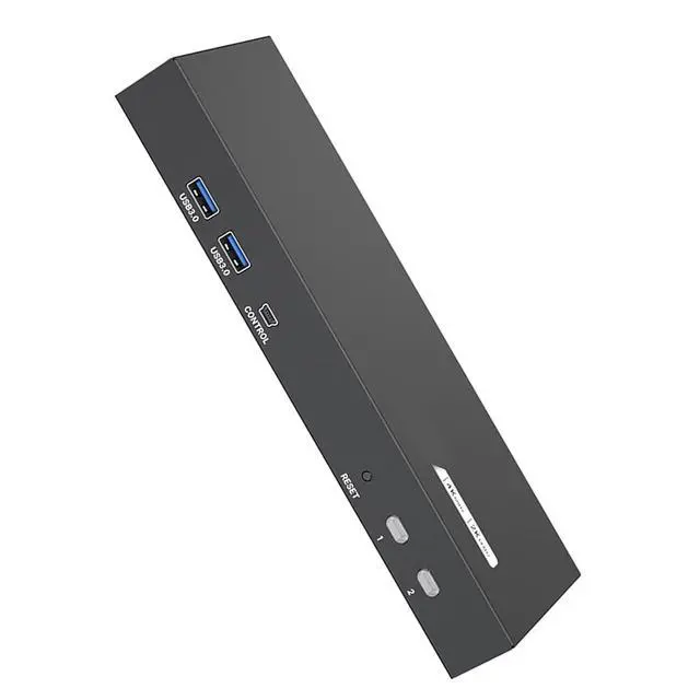 controls two computers with two 4K@60Hz monitors using this hdtv KVM switcher, featuring usb3.0 super speed data transfer and hotkeys switching for instants host