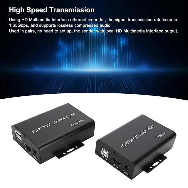 High Speed Using HD Multimedia Interface ethernet extender, the rate is up to 1.65Gbps, and supports lossless compressed sound; used in pairs, no need to set up, the sender with local HD Multimedia Interface output.