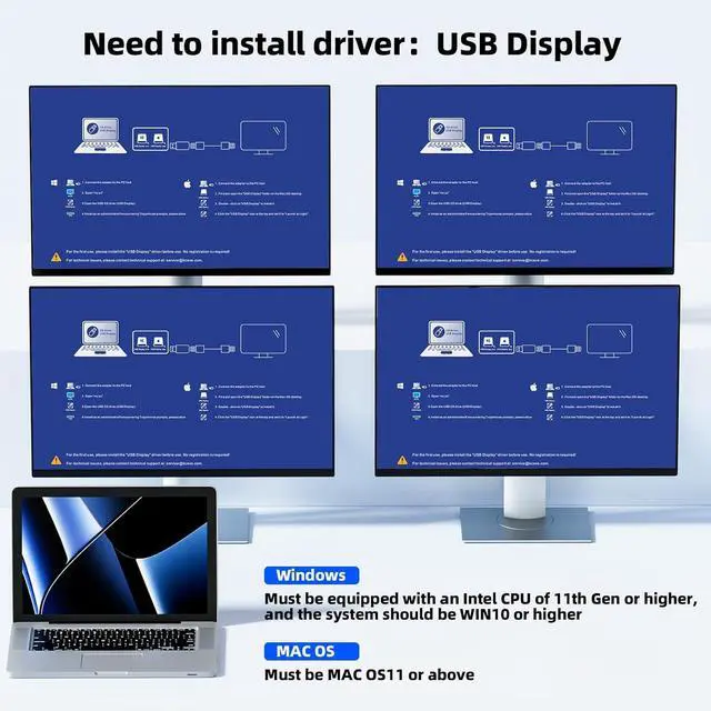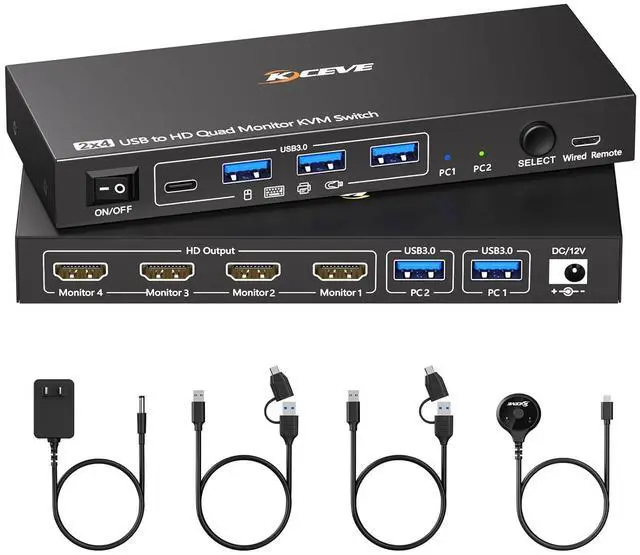 ()Driver installation is required to recognize the monitors;(2)To get the 2 computers quad monitor KVM switch work properly, the PC system must be 11th or above;3Two USB 3.0 cables in the packaging, but HDMI cables are not included. (4)Not supporting EDID emulation and hotkey switching.Any questions, please tell us, our technical team will reply you within 12 hours.