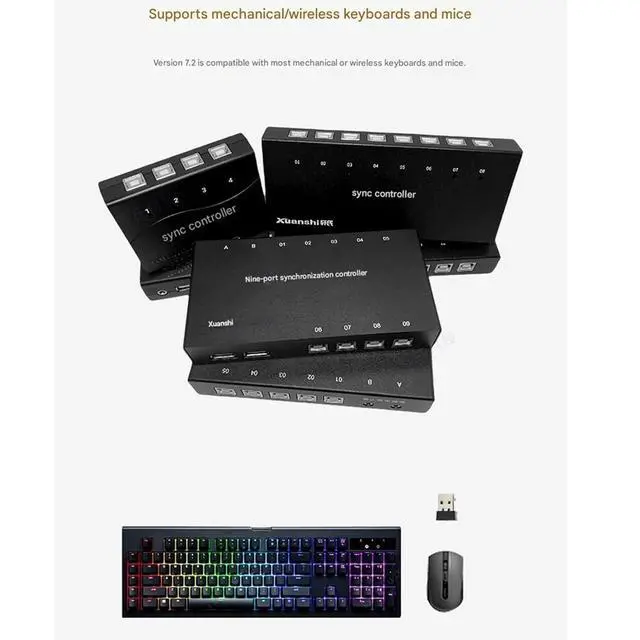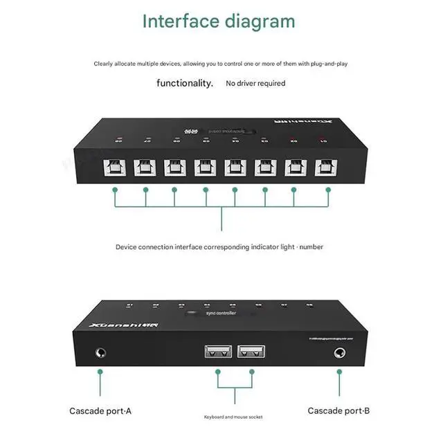 Synchronizer FunctionThe 48-port USB interface realizes 48 to 1 free switching or one-button 48 port synchronous control. As both a synchronizer and a KM switcher, You can switch between hotkey mode and synchronizer button mode, which is convenient and quick.