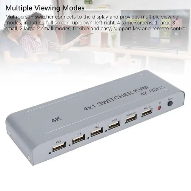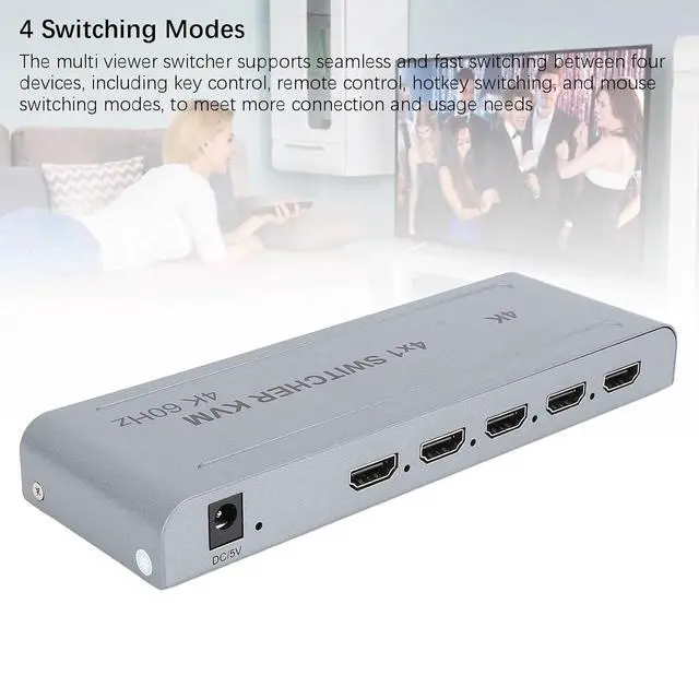 4 Switching Modes: The multi viewer switcher supports seamless and fast switching between four devices, including key control, remote control, hotkey switching, and mouse switching modes, to meet more connection and usage needs