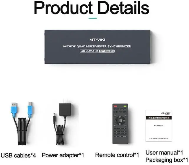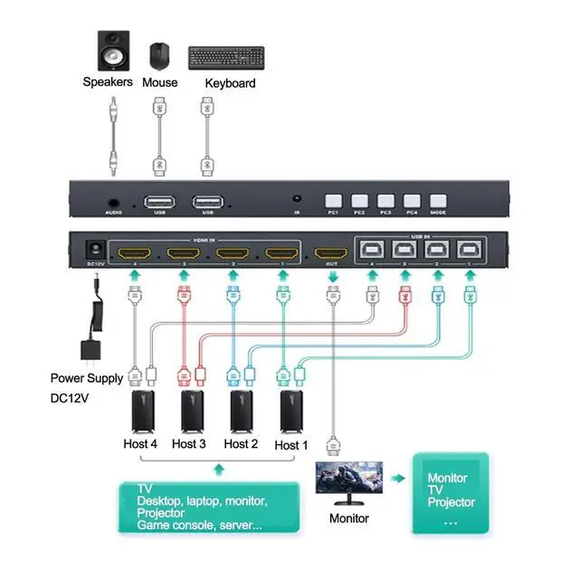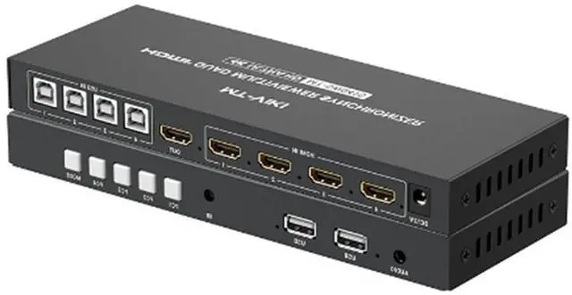 Features: This dual monitor HDMl KVM Switch 4 port supports 4computers sharing 1 monitors and USBdevices. Supports three switching methods: panel buttons, IR remote control, and keyboard hotkeys, ensuring instantaneous screen switching for a hassle-free experience.