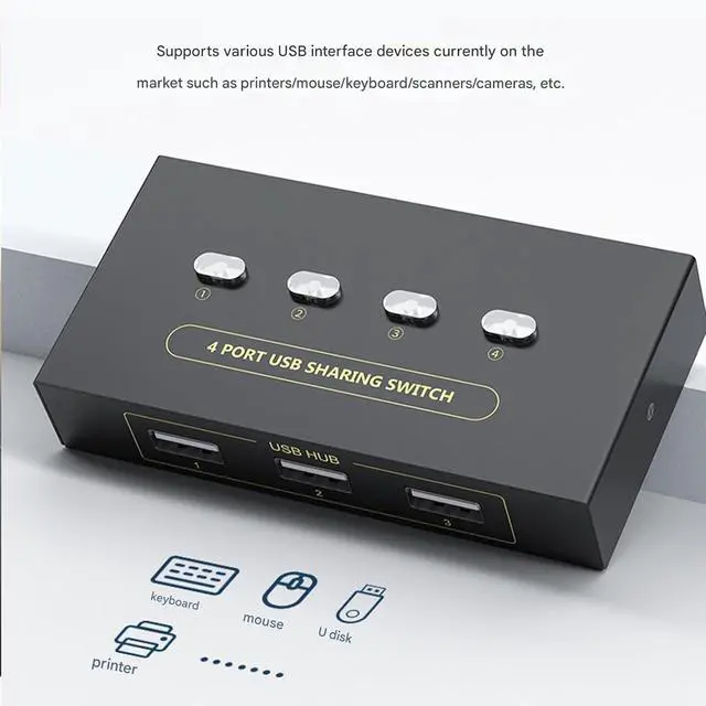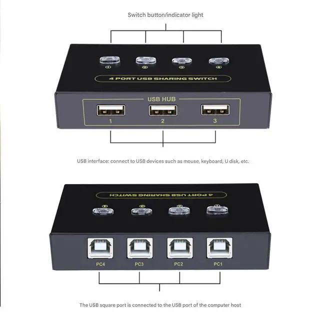 Switch at willctionDirectly press the buttons on the USB switch to switch or the button metal controller to switch. The controller connection line can be extended to more , remote control/convenient/fast/efficient/stable switching