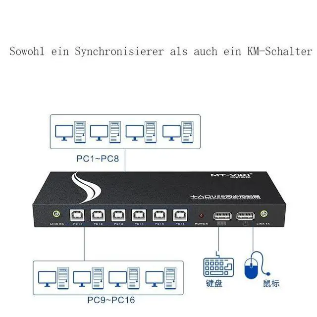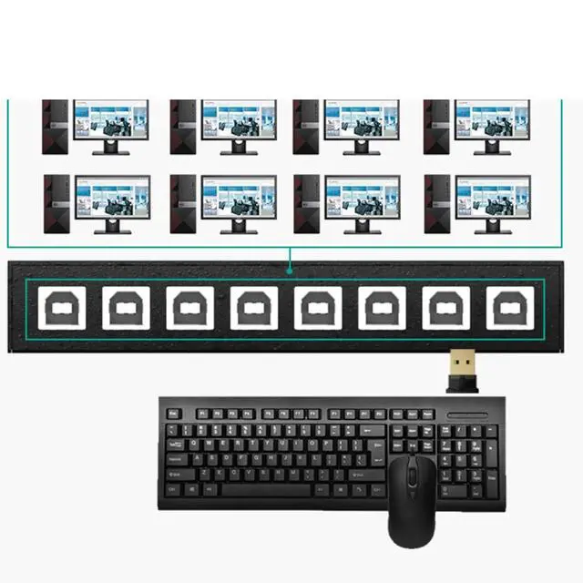 Synchronizer FunctionThe 8-port USB interface realizes 8 to 1 free switching or one-button 8-port synchronous control. As both a synchronizer and a KVM switcher, You can switch between hotkey mode and synchronizer button mode, which is convenient and quick.