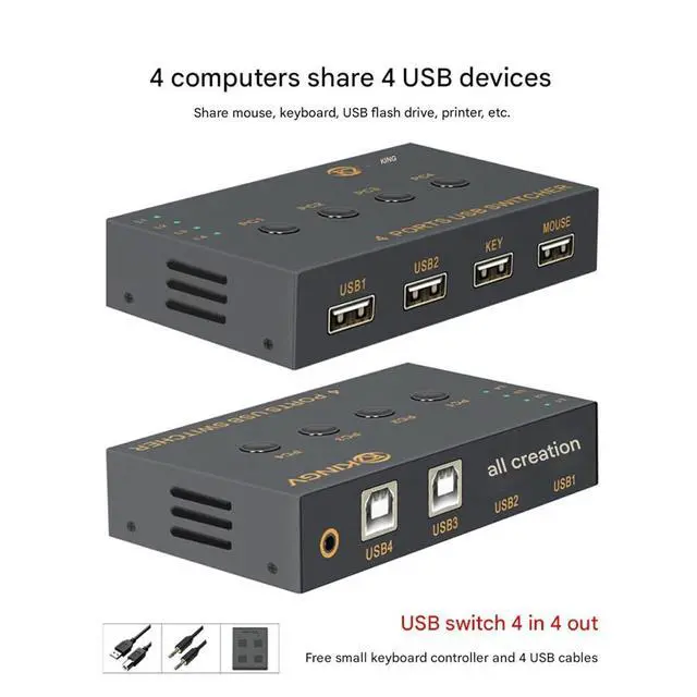 Multiple port distributors: The Multi-Port Synchronizer allows for free switching or simultaneous control of 4 ports at the touch of a button. As a KM Synchronizer, it can switch between hotkey mode and simultaneous keystroke mode for quick and easy operation.