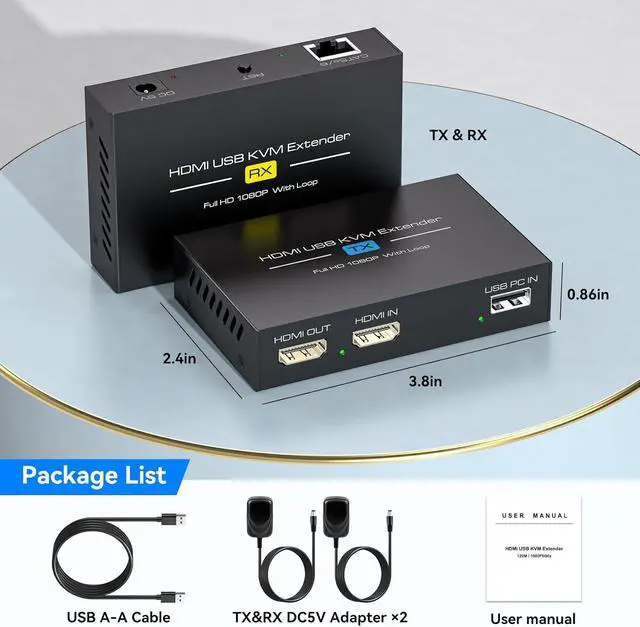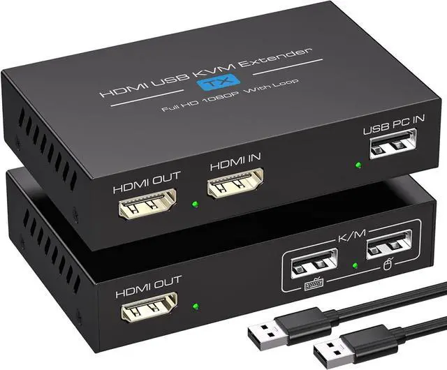 Loop-out+Reset FunctionThis KVM HDMI Extender has a loop-out function, can be directly connected to the monitor (need to support 1080P), which is more convenient to monitor the status of the remote monitor.Easy reset with a single press of the RST button.Indicator lights allow you to easily recognize the connection status (output signal indicator: illuminates when communication with the receiver is normal)