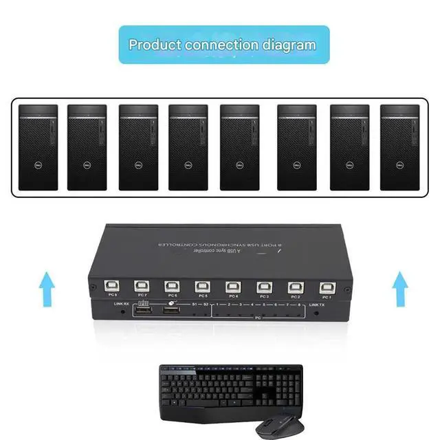 Too mouthful computer controllerThe 8-port USB interface realizes 8 to 1 free switching or button 8-port synchronous control. As both a synchronizer and a KM switcher, You can switch between hotkey mode and synchronizer button mode, which is convenient and quick.