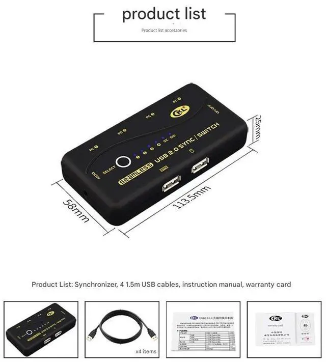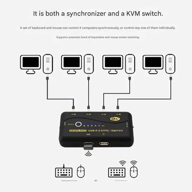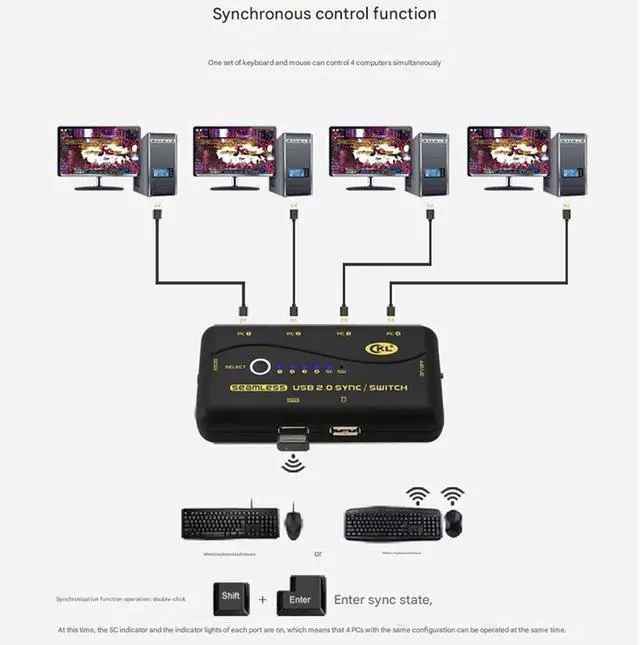 Multiple port distributors: The Multi-Port Synchronizer allows for free switching or simultaneous control of 4ports at the touch of a button. As a KM Synchronizer, it can switch between hotkey mode and simultaneous keystroke mode for quick and easy operation.