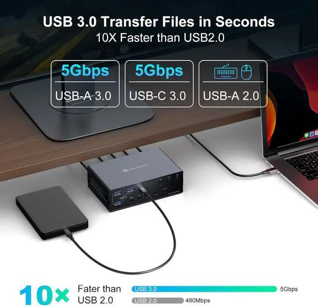 Wide Compatibility This kvm docking dual laptops seamlessly integrates with macOS, Windows, Chrome OS, and Linux and Android systems; compatible with both laptops and desktops. Simply ensure your computer has a USB 3.0 (or higher) port and download the DisplayLink driver to unlock the full functionality of this KVM dock