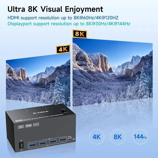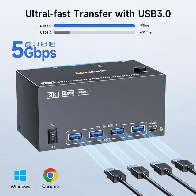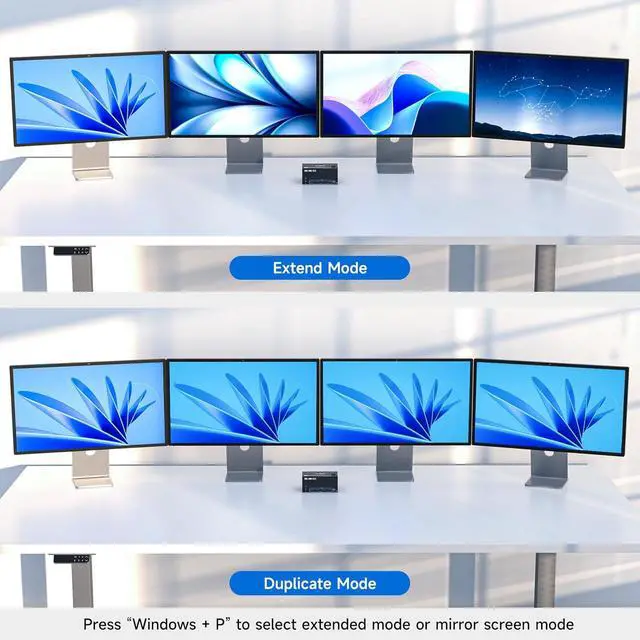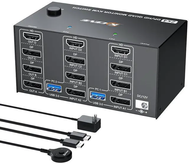 Control 2 desktop PCs on 4 monitors with our DP+HDMI matrix KVM switch. Equipped with a built-in 4-port USB 3.0 hub, it enables seamless sharing of keyboard, mouse.
