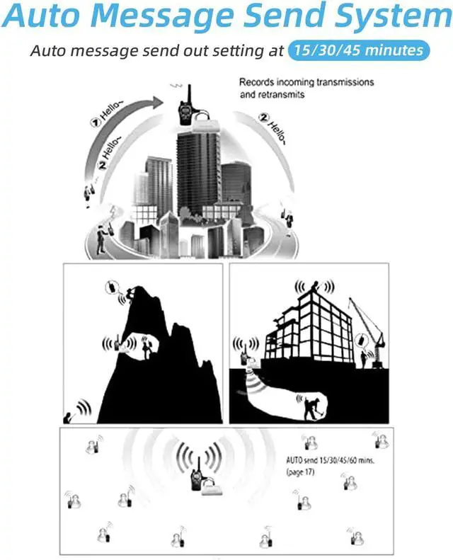 A simplex repeater can be set up with a single handheld radio and operated from batteries. This makes it perfect for disaster response, home or campground use, and any place where radio range needs to be extended but the cost and complexity of a traditional repeater cant be justified.Auto message send system 15,30,45 minutes setting