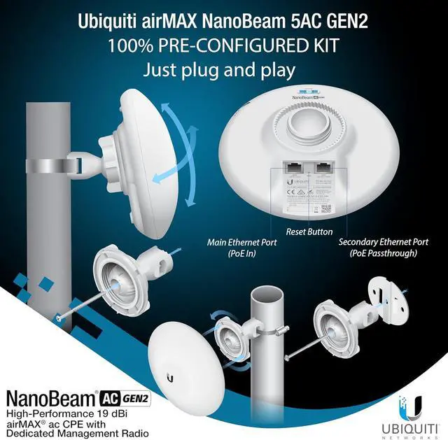 NBE 5AC GEN 2 - MULTIPLE APPLICATIONS: Ideal for expanding network coverage between buildings, linking distant sites, or offering broad-area wireless internet connectivity.