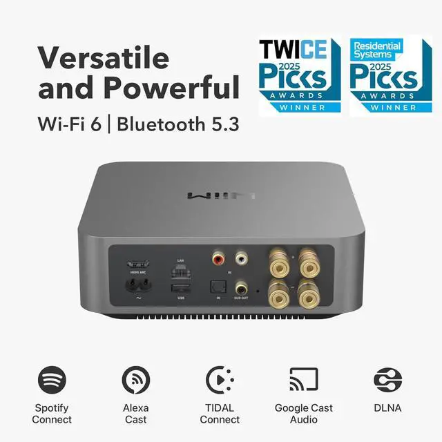 Does It All Like Magic: Master your audio universe with the WiiM Home App. Stream from top music services and manage your system effortlessly, room by room. Adjust volume, sync speakers, save favorites, set alarms, and tweak settingsall in one place. Prefer your go-to music app? No problem, play straight from it. Plus, go hands-free with voice commands. Whether you're using Alexa, or Google Assistant, control is just a word away, even with the included voice remote.