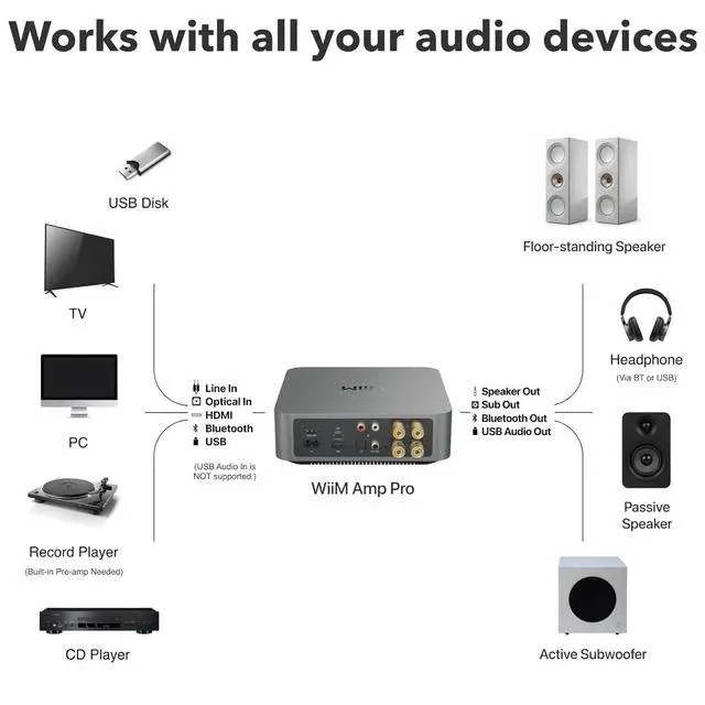 Home Theater Magic, Simplified: Elevate your entertainment experience effortlessly with the WiiM Amp Pro's HDMI ARC port. Plug in your TV and immerse yourself in rich stereo sound for shows, movies, and video games. Craving that extra oomph? Simply add a powered subwoofer to take your audio to cinematic levels. With minimal setup required, the WiiM Amp Pro offers a seamlessly integrated AV system that turns your living room into a home theater paradise.