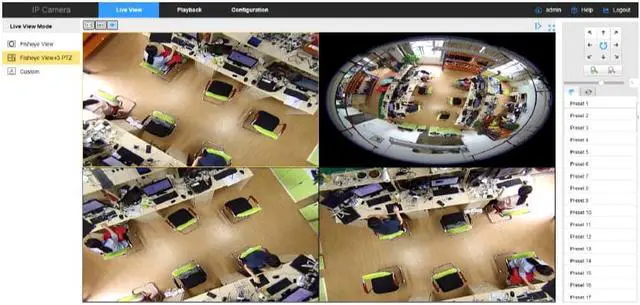 Mode 1:Fisheye+Panorama +3 xPTZ 15fps@(1280×1280),15fps@(2048×1536),15fps@(1024×768) x 3