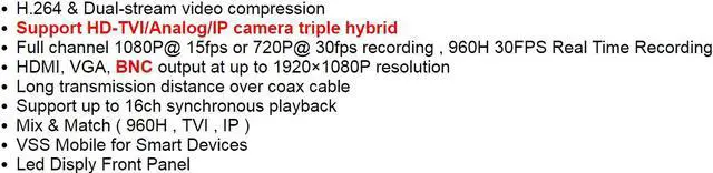 Support HD-TVI/Analog/IP camera triple hybrid