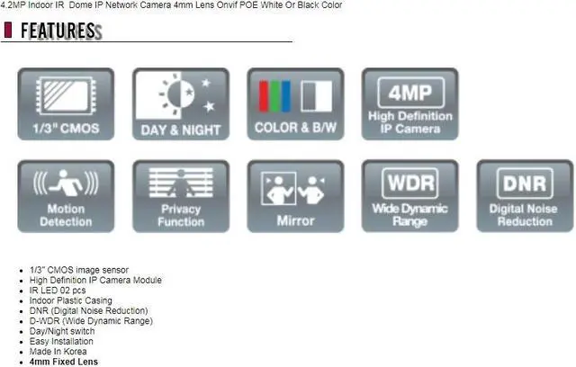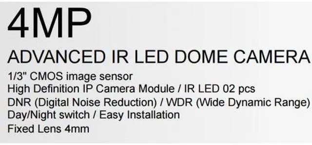 4.2MP Indoor IR Dome IP Network Camera 4mm Lens Onvif POE White Color (Wall Mount)