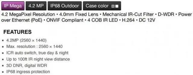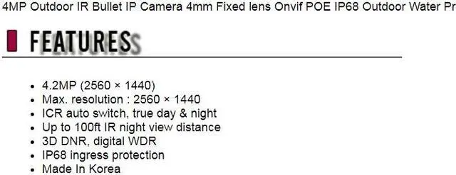 Eyemax 4MP Outdoor IR Bullet IP Camera 4mm Fixed lens Onvif POE IP68 Outdoor Water Proof