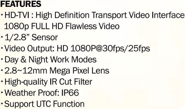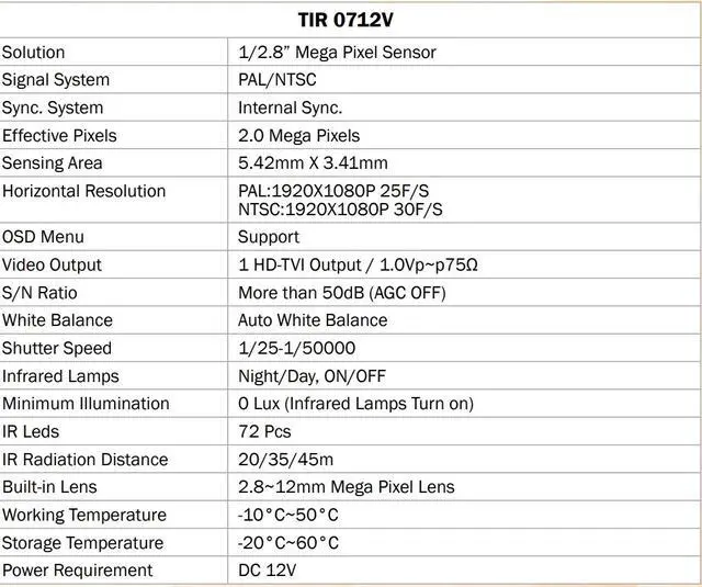 Eyemax TIR-0712V HD-TVI 2MP Outdoor Bullet Camera, 2.8-12mm, 72 IR LED 12V DC