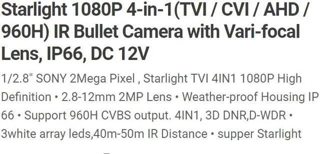 Starlight TVI 4IN1 1080P High Definition