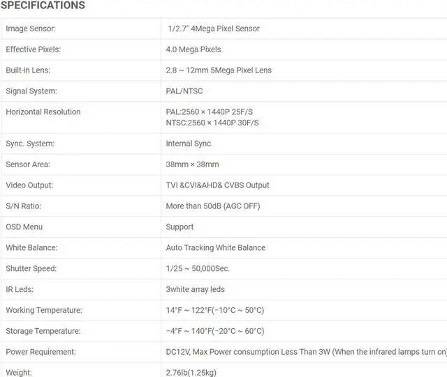 2.8-12mm 5Mega Pixel Lens
