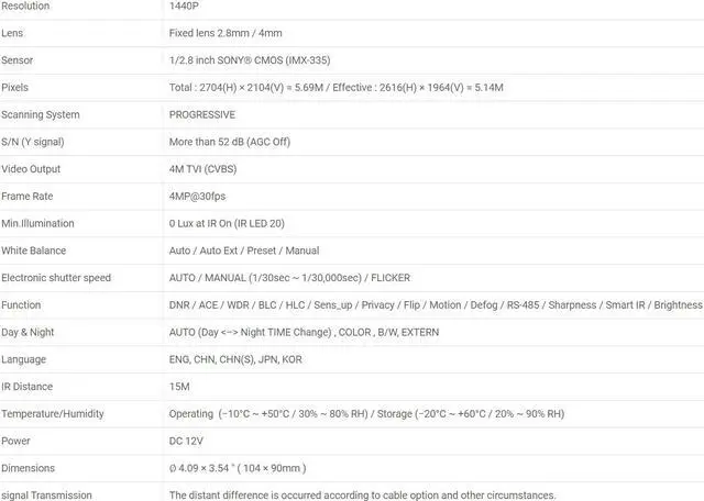 1/ 2.8 inch SONY® CMOS (IMX-335)