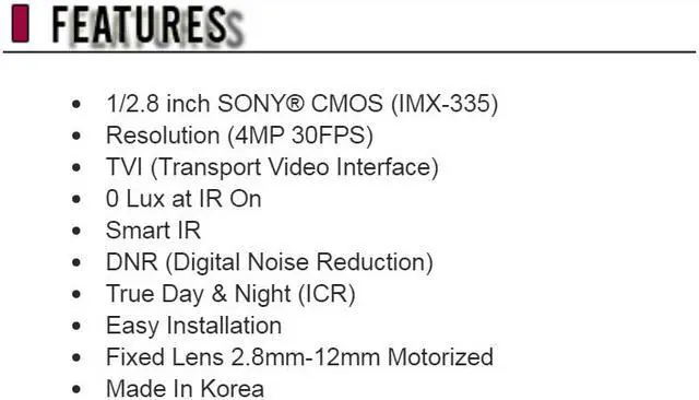 • 1/2.8 inch SONY® CMOS (IMX-335)