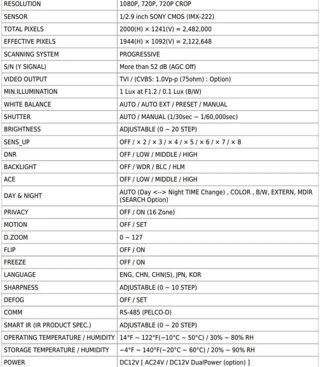 1/2.9 inch SONY CMOS (IMX-222)