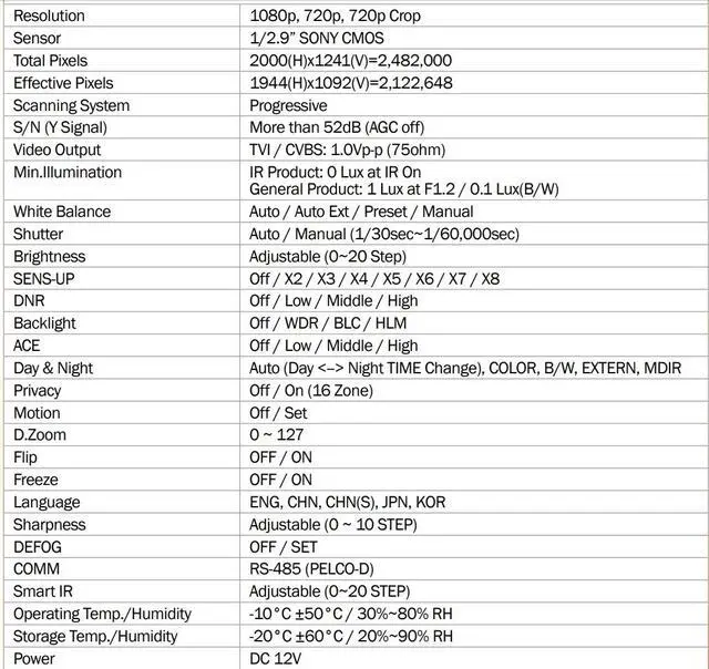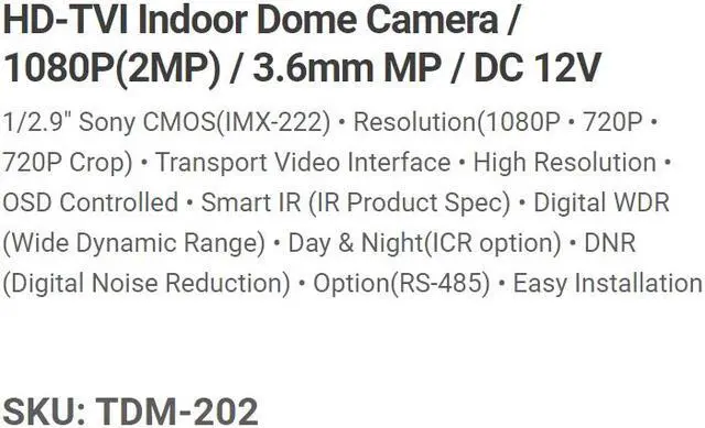 Eyemax Superdome Series Indoor Dome HD-TVI Camera TDM-202-B 1080P, 3.6mm 12V DC