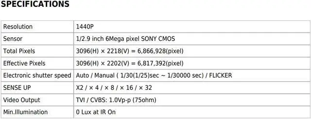 1/2.9 inch ONY CMOS/ HD-TVI (1440P 30fps)